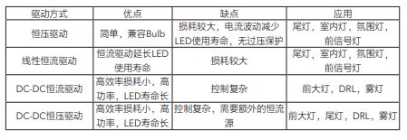 圖10:LED DC-DC恒流驅(qū)動和DC-DC恒壓驅(qū)動示意圖 表4:四種LED驅(qū)動方式對比
