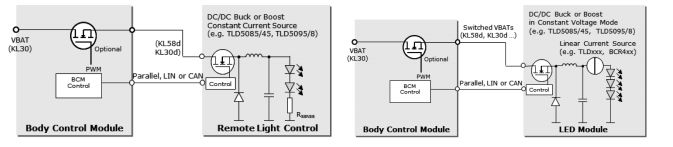 在BCM設(shè)計中涉及到許多負(fù)載,對應(yīng)不同的負(fù)載會采用不同的驅(qū)動類型,主要包括開關(guān)驅(qū)動和LED驅(qū)動兩類。