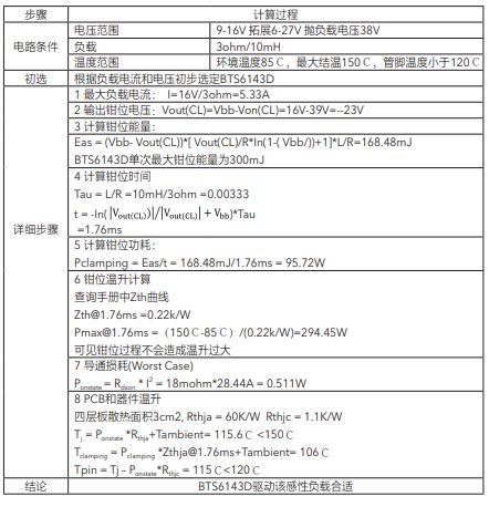 下面以感性負(fù)載計算舉例說明器件選擇過程,如表6所示。