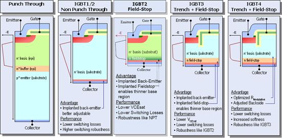 NPT(non-punch through):NPT-IGBT由德國西門子公司于1987年推出,為上世紀(jì)90年代的主流產(chǎn)品。英飛凌第二代IGBT采用NPT技術(shù)。