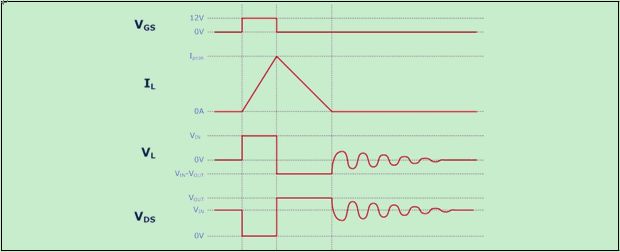 如前文所述,在所有標(biāo)準(zhǔn)電源拓?fù)洌ㄉ龎恨D(zhuǎn)換器、降壓轉(zhuǎn)換器和反激式轉(zhuǎn)換器)中,每個(gè)開關(guān)周期結(jié)束后,VDS均收斂到輸入電壓。因此,MOSFET的漏源寄生電容(CDS)存儲(chǔ)了一些電荷,在下一個(gè)開關(guān)周期通過MOSFET釋放。這表現(xiàn)為MOSFET產(chǎn)生額外的瞬態(tài)漏極電流(ID)變大。