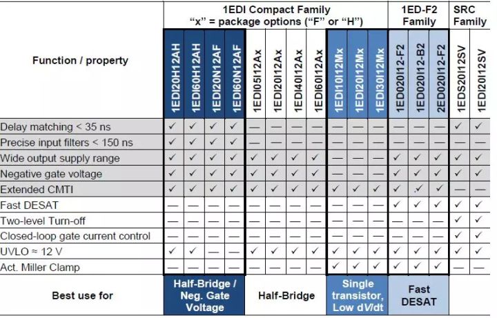 綜上所述,為了在實際應用中發(fā)揮SiC MOSFET的高頻特性,需要選擇具有合適的驅(qū)動電壓和驅(qū)動電流,滿足短死區(qū)時間設計的較小傳輸延時以及芯片之間匹配延時的驅(qū)動芯片。同時,有效的保護功能與抗干擾性,可以滿足更高的系統(tǒng)可靠性要求。表1將英飛凌磁隔離驅(qū)動芯片EiceDRIVER?系列的相關參數(shù)進行了比較,全系列產(chǎn)品為用戶提供了各種個性化選擇。(英飛凌igbt廠家)